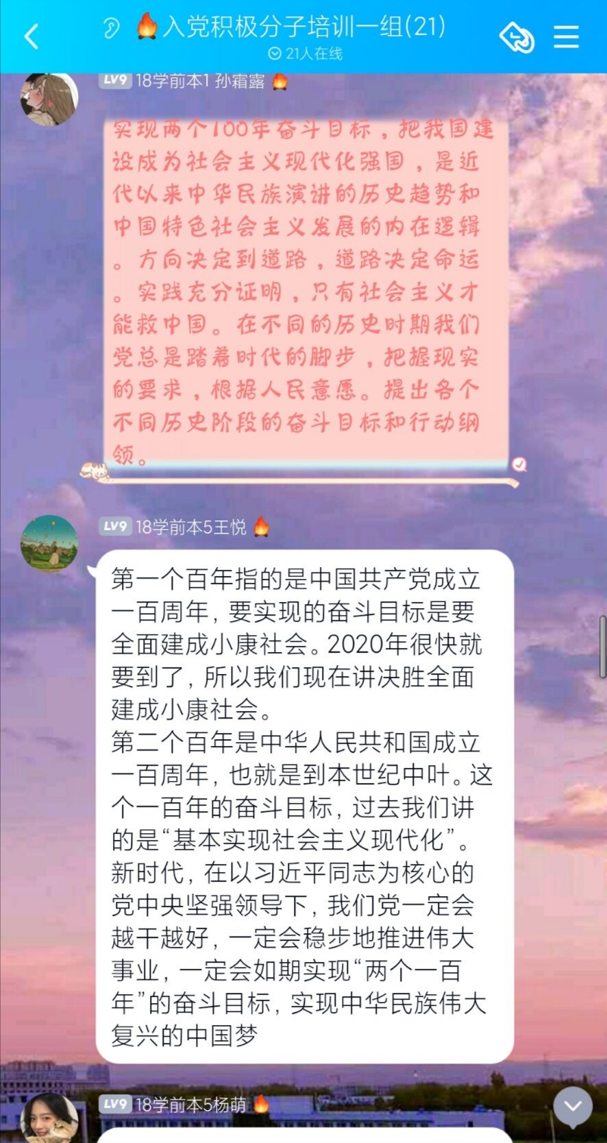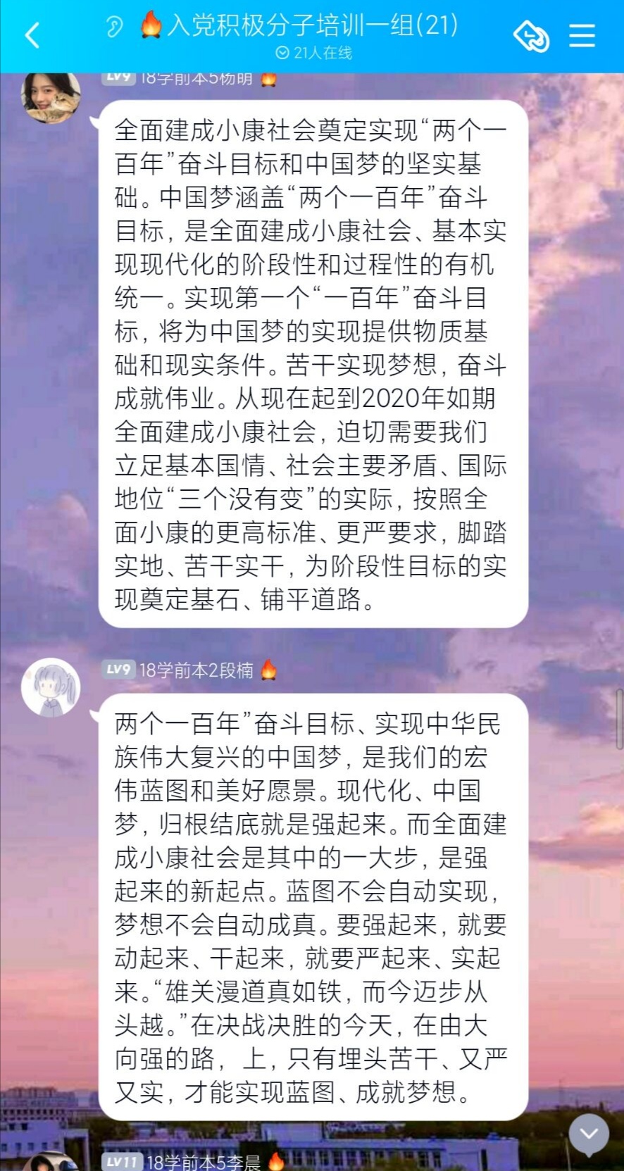 进行线上培训的入党积极分子也通过文字描述或视频方式进行总结学习,认真对待党知识的学习,进一步加强自身能力与素质。