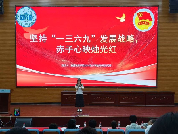 比赛结束后,尹雨晴副教授进行专业点评。她从表达技巧、内容深度等多个维度,条分缕析,既高度赞扬了选手们的出色表现,又精准指出部分细节的不足,为在场学子带来了宝贵的经验分享。教师教育学院党委书记梁立君进行了总结讲话。她强调“青春因责任而厚重,人生因担当而精彩”,鼓励同学们以此次比赛为新的起点,将赛场上展现出的责任担当精神融入日常学习与生活,以“一三六九”战略为引领,成为有理想、敢担当、能吃苦、肯奋斗的新时代青年,为将来走上社会书写更加灿烂的美丽篇章。
