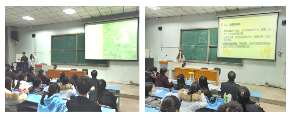 本次教学技能竞赛包含钢笔字、粉笔字、说课、讲课(片段)和微课共五个竞赛项目。考查学生七方面的能力:包括钢笔字书写、粉笔字书写、多媒体课件制作、教师口语、说课、教学和微课等方面能力及综合运用水平。