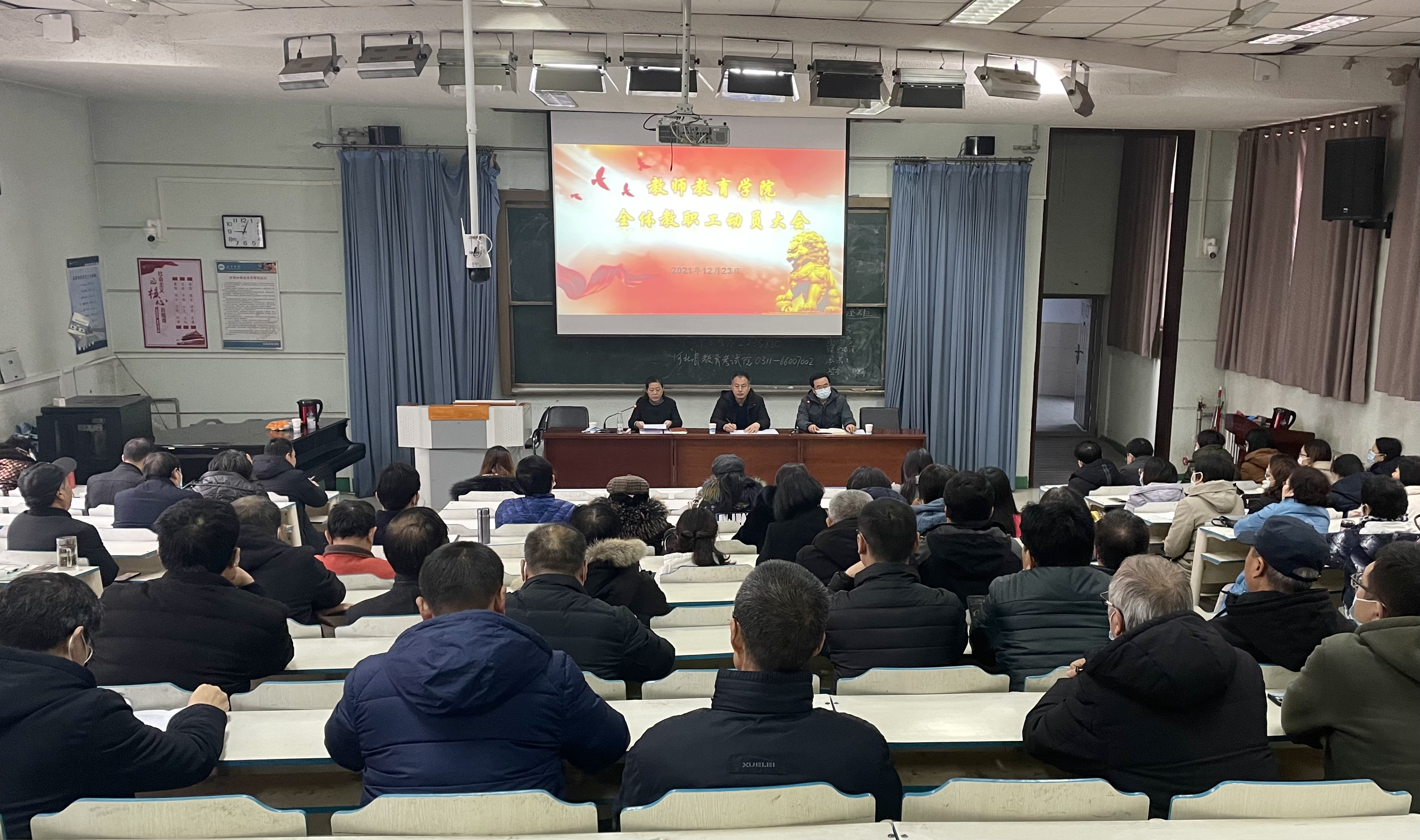 2021年12月23日上午,教师教育学院全体教职员工专业认证工作动员大会在3号教学楼西二阶梯教室召开。本次会议受到校领导的高度重视,肖士恩副校长莅临参加。