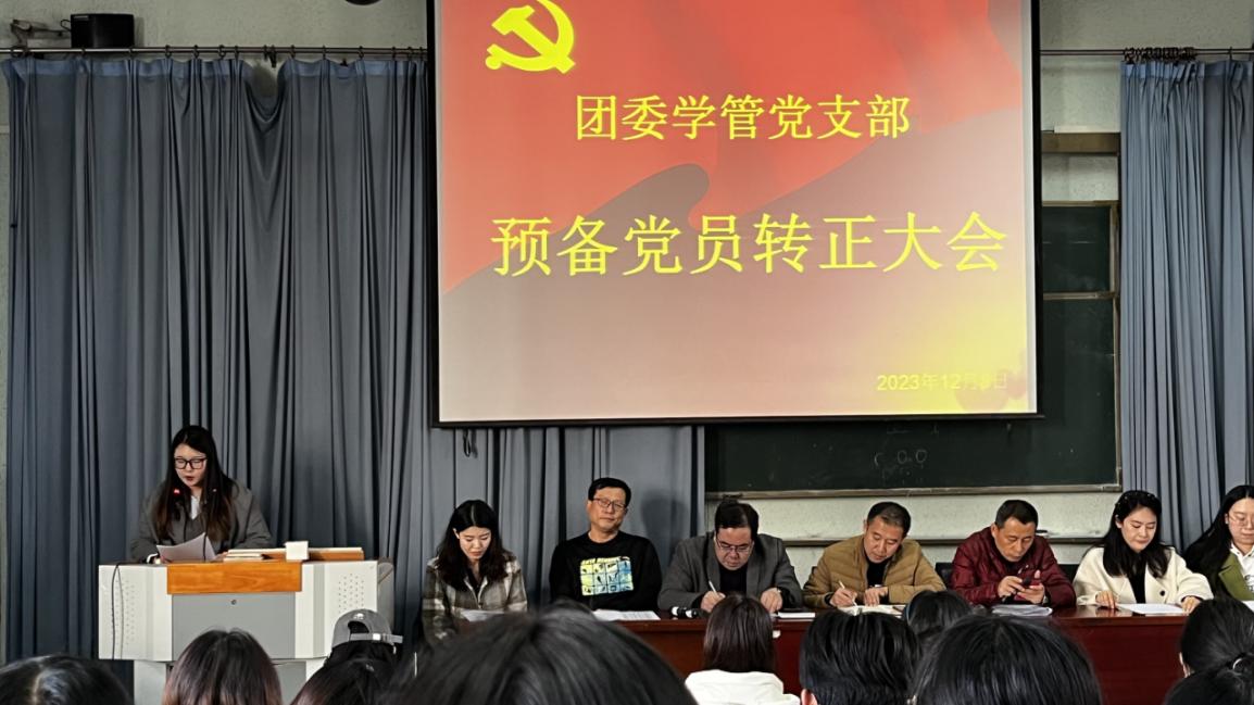 团委学管党支部预备党员转正大会由学管办主任吕兴朝老师主持,会议主要内容为讨论预备党员同志转正的相关事宜。会议开始,各位预备党员依次宣读预备党员转正申请书,深刻阐释出通过党组织的培养教育和各项党内活动,坚定了其共产主义信念,认识到做一个合格的共产党员,不仅要组织上入党,更重要的是要思想上入党的观念。与会党员对49名预备党员的表现给予肯定。经无记名投票表决,一致同意接受兰紫薇等49名同志按期转为中共正式党员。