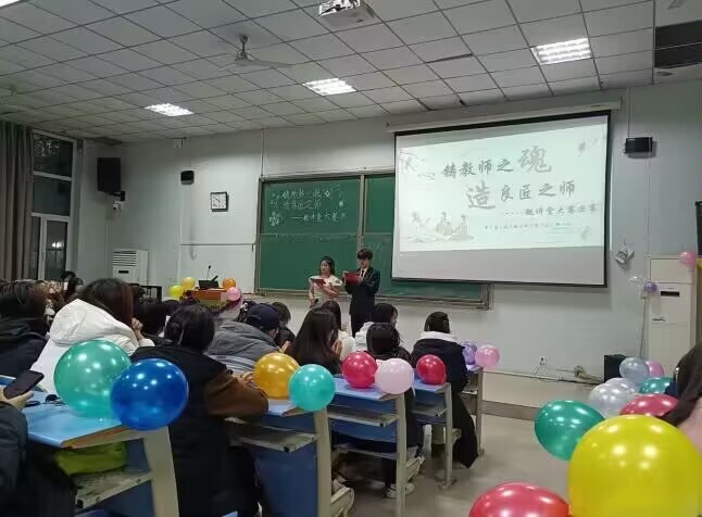 强教必先强师。教师是立教之本、兴教之源,强师之策是筑牢教育强国建设的根基所在。为鼓励同学们坚定远大的理想信念、陶冶高尚的师德情操、涵养扎实的专业知识、学习新型教育形式、勤修仁爱之心,树立“躬耕教坛、强国有我”的志向和抱负,坚守三尺讲台,潜心教书育人,成为莘莘学子成长路上的引路人,2023年11月26日晚6:30教师教育学院于三教东二阶教室成功举办了“铸教师之魂,造良匠之师”微讲堂大赛决赛。