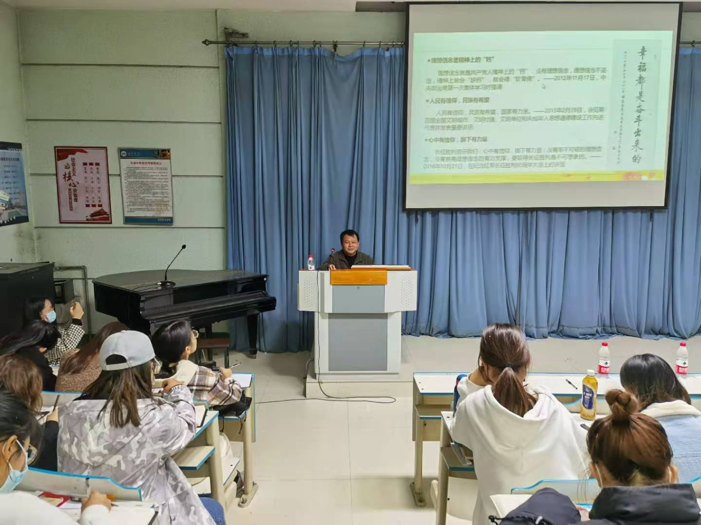 为使入党积极分子进一步领会习近平总书记的讲话精神,在深化学习认识中凝聚思想之力,提高履行新时代使命任务的能力素质,树立正确的风向标。2020年11月12日晚六点,初等教育学院党委书记张成起在第三教学楼西二阶梯教室对入党积极分子进行了关于《习近平治国理政金句解读及书法赏析》培训。