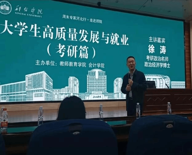 2024年5月12日教师教育学院和会计学院在体育馆报告厅联合举办“大学生高质量发展与就业(考研篇)”报告会,本次报告会诚挚邀请了考研政治名师——徐涛博士,为同学们分享考研经验以及未来考研的发展趋势和就业环境。报告会的成功举办切实提高了同学们的考研激情,更为推进大学生的高质量发展与就业起到积极促进作用,学院也将一如既往地全面支持和关注每一位邢院学子,做好同学们的就业指导与服务,为大学生实现高质量发展与就业保驾护航。