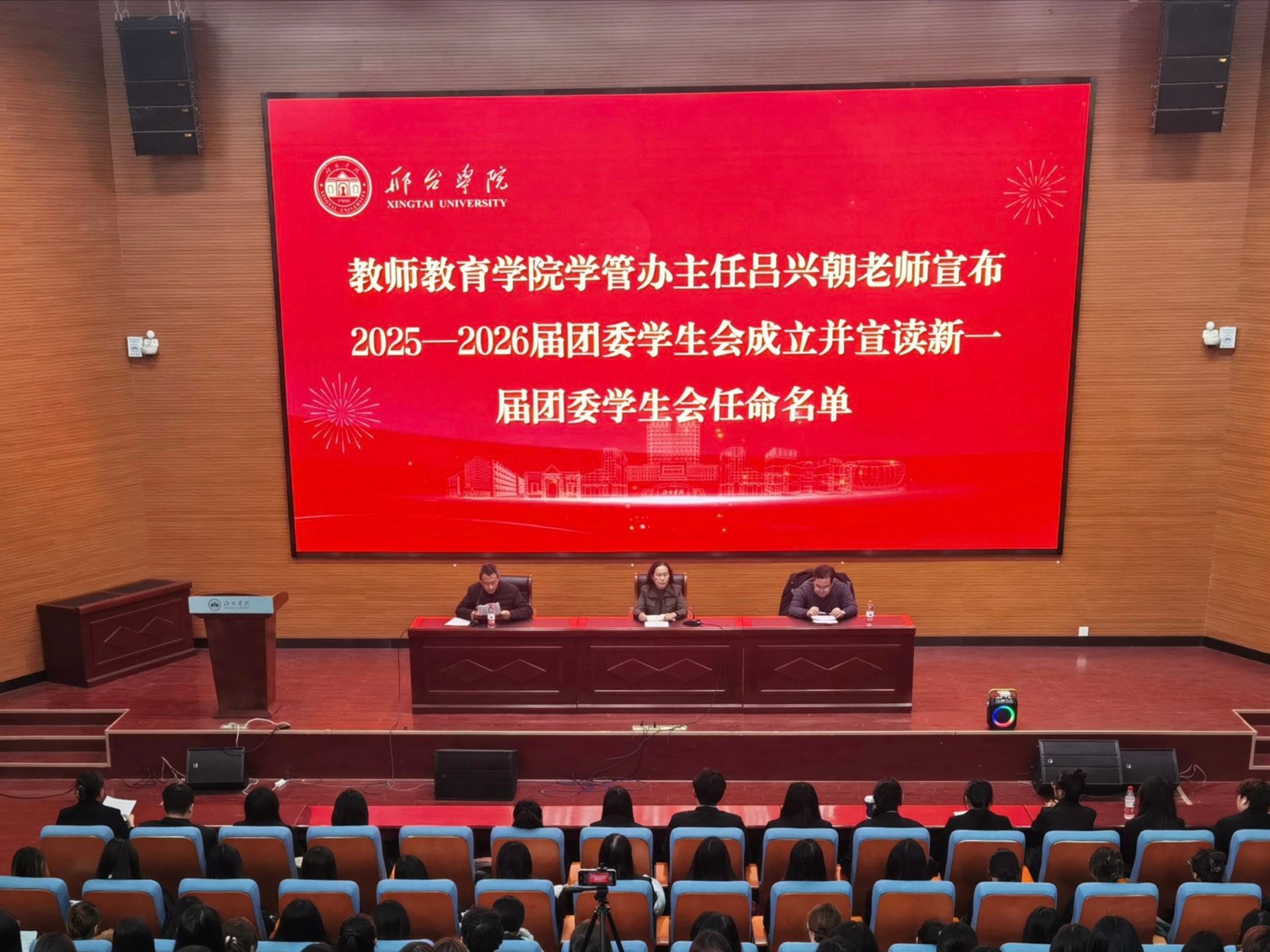 为明确新一届团学组织在思想引领、成长赋能等方面的核心任务,统一工作方向以凝聚协作共识,营造“承前启后、锐意进取”的青春氛围,鼓励成员以积极状态投入服务,为校园建设注入新动能。2025年10月29日,邢台学院教师教育学院2025-2026届团委学生会成立大会于知行楼二楼报告厅成功举办。