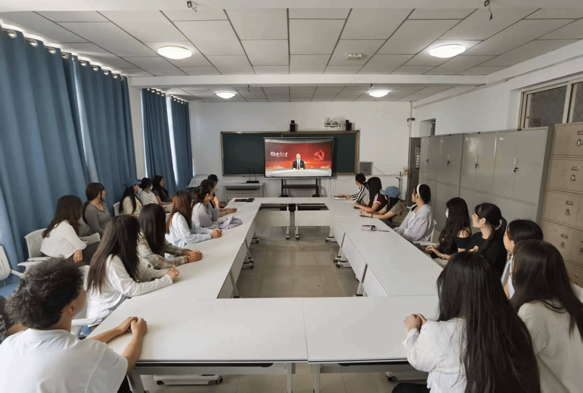 9月12日下午16:00,我院组织师生党员于经世楼315会议室,观看2025年高校党组织示范微党课第1